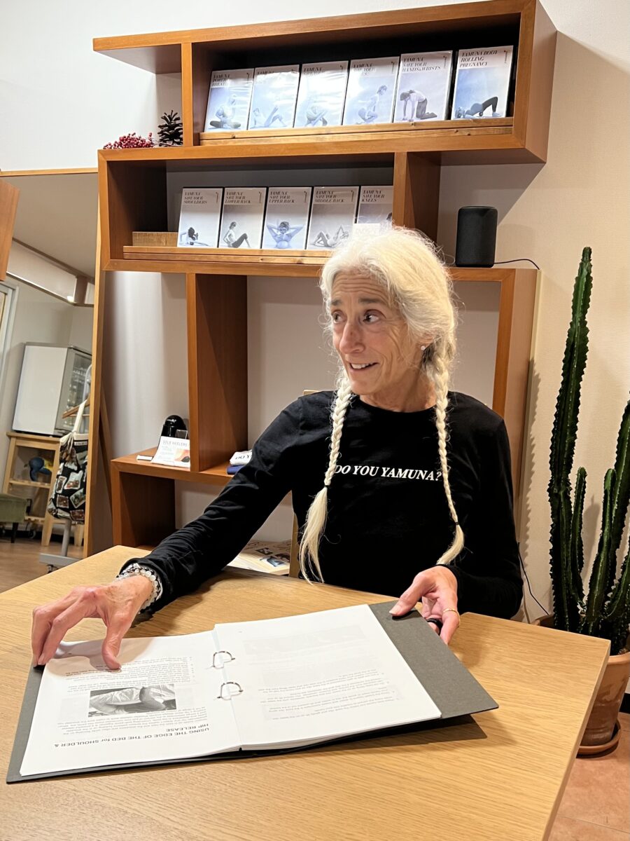 ヤムナ:元々、娘のヤエールを出産した時に左の股関節を痛めました。整形外科を受診してもなかなか回復に向かわないので、独自の考察を重ねて生まれたのがヤムナメソッドの原型なのです。左股関節については、そのメソッドを実践して、長年、自分で調整してきました。ところが、5年程前にスペインのある場所に聖地巡礼で向かう時、長い距離を歩いている途中で濡れた泥状の道で足を滑らせ、崖のような傾斜を滑り落ちてしまいました。膝、足首が腫れて、テーピングを施しました。かなり痛めた感覚があったのですが、翌朝、2時間ほどボディローリングのメソッドで調整したところ歩けたので、そのまま残りの20kmくらいを歩いてしまいました。